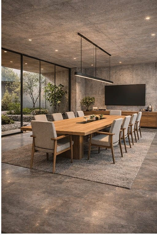No interior, ambientes amplos e integrados combinam funcionalidade e acolhimento, com iluminação cuidadosamente planejada e elementos naturais que trazem equilíbrio ao espaço de trabalho.